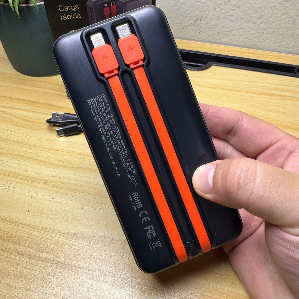 🔋 Múltiples puertos y cables integrados (USB, USB-C y más) para cargar distintos dispositivos