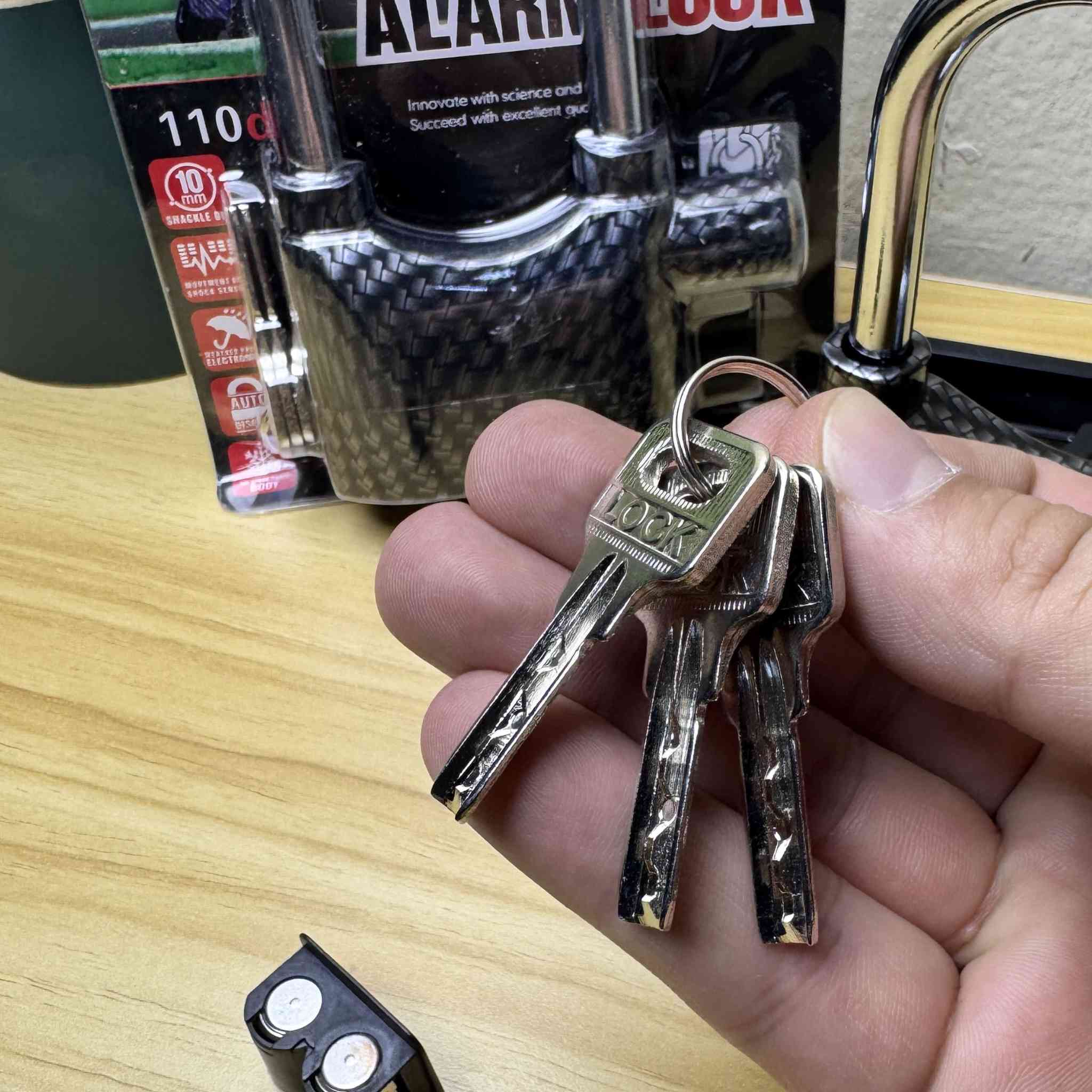 • Fácil de usar – solo insertá la llave, cerrá el candado y la alarma se activará automáticamente