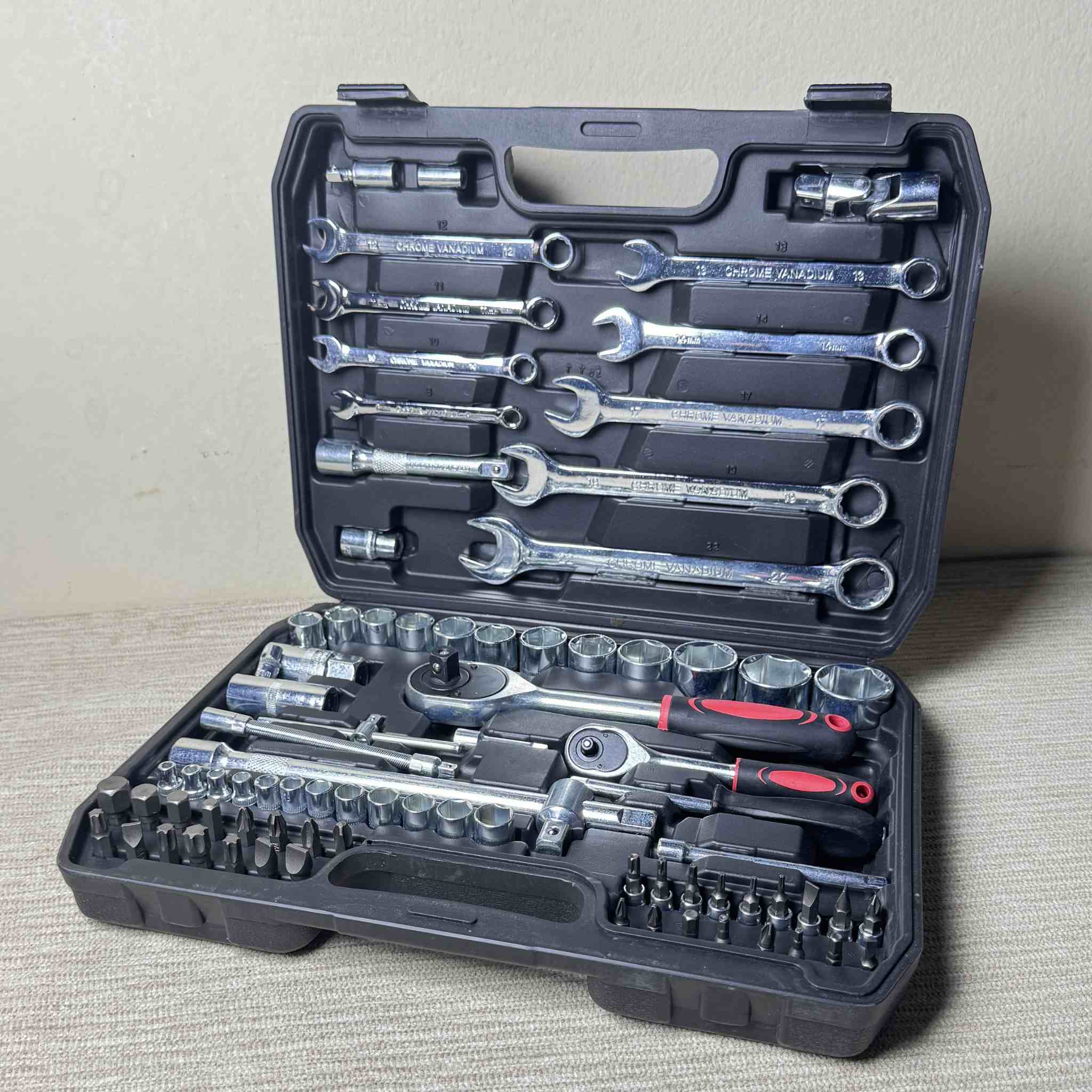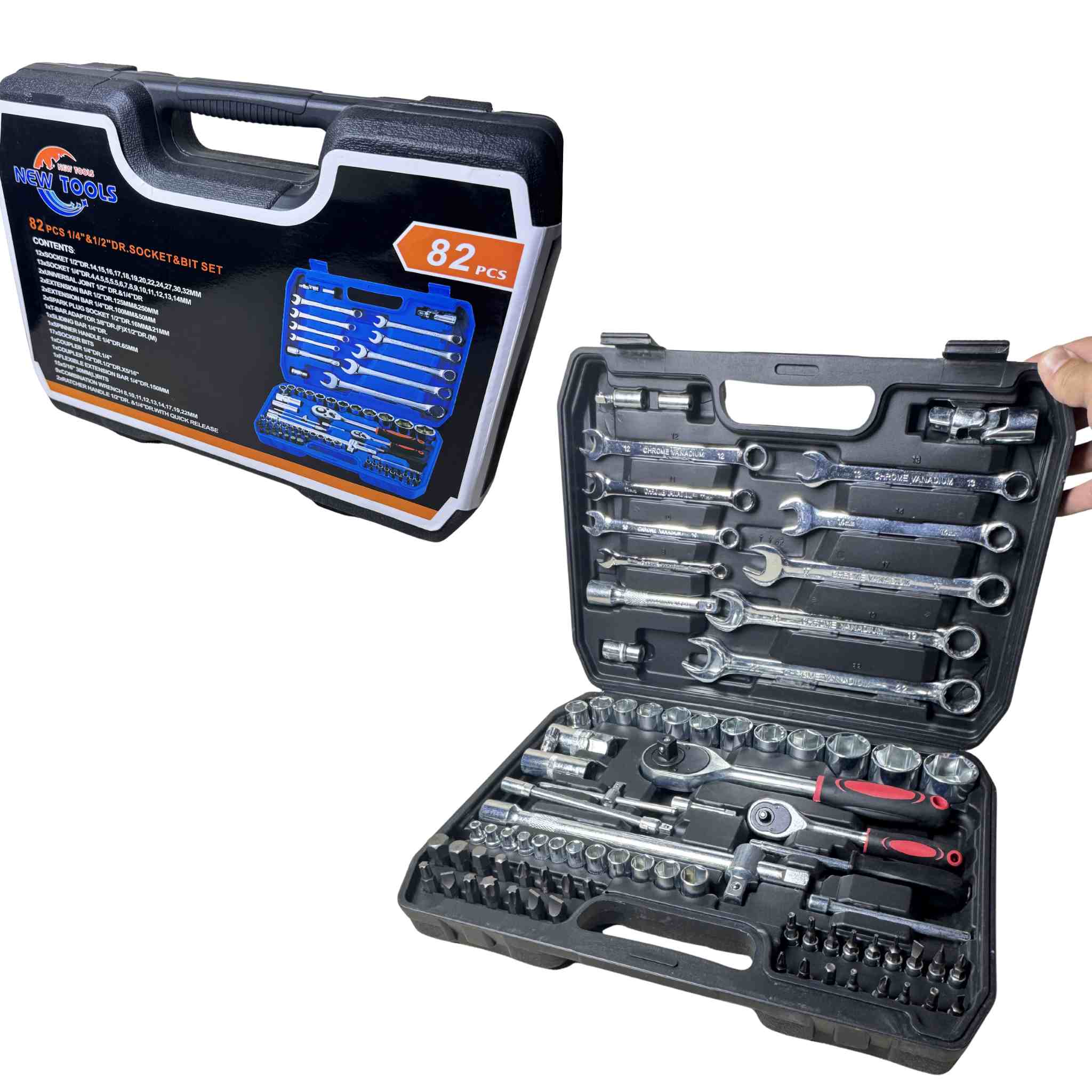 ¡Todo lo que necesitas para tus trabajos mecánicos, domésticos o de bricolaje en un solo lugar! Este completo juego de herramientas de 82 piezas está fabricado en acero cromo vanadio de alta resistencia , garantizando durabilidad, precisión y un desempeño profesional.